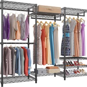 VIPEK V5 Heavy Duty Clothes Rack, Portable Closet Wardrobe with 4 Hanging Rods & 8 Shelves, Freestanding Adjustable Garment Rack for Bedroom, Walk-in Closet, 890 lbs Capacity, Black, 68.9″ L