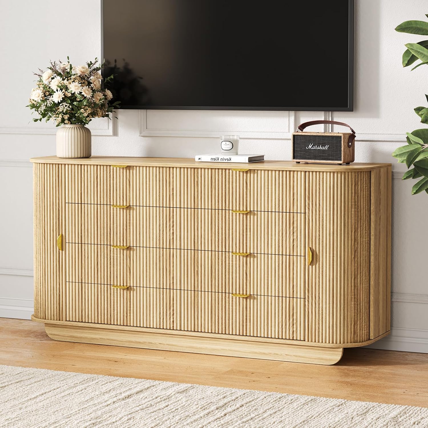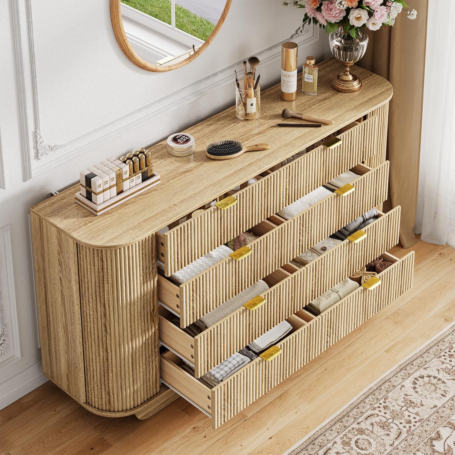 Crafted with a natural finish, this fluted dresser adds a touch of sophistication to any space while seamlessly complementing your existing decor. The smooth sliding mechanism ensures easy access to your belongings, making it a practical choice for everyday use.